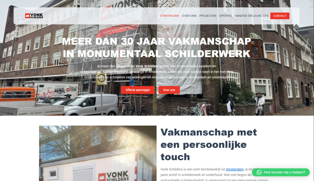Vonk Schilders is een professioneel schildersbedrijf dat staat voor kwaliteit, precisie en betrouwbaarheid. Met jarenlange ervaring en oog voor detail leveren zij vakwerk waar klanten op kunnen bouwen. Toch ontbrak er één belangrijk onderdeel: een online uitstraling die hetzelfde niveau van professionaliteit uitstraalt als hun werk.